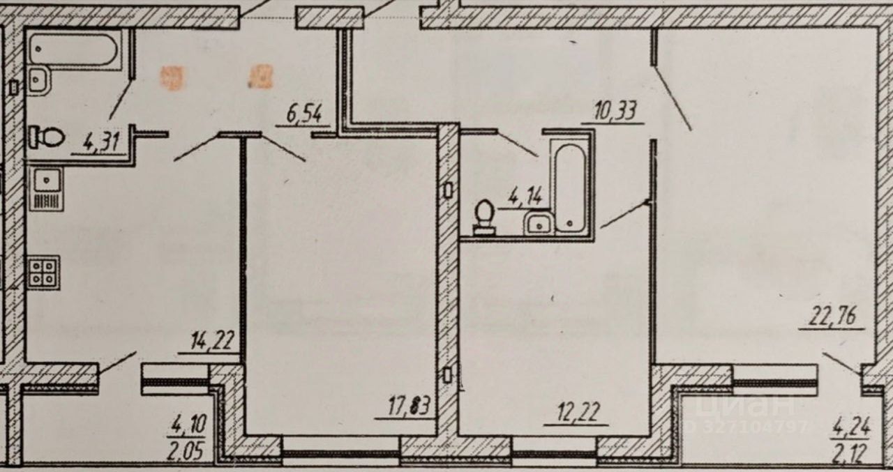 Квартира общей площадью 92 кв. м. Жилая площадь 53 кв. м, просторная кухня - 14 кв. м. Квартира в черновой отделке, высота потолков 2,9 м. окна пласт, 2 лоджии, каждая по 4 кв. м. - застеклены, 2 санузла, установлены счетчики воды и газа, также установлен котел фирмы Protherm.