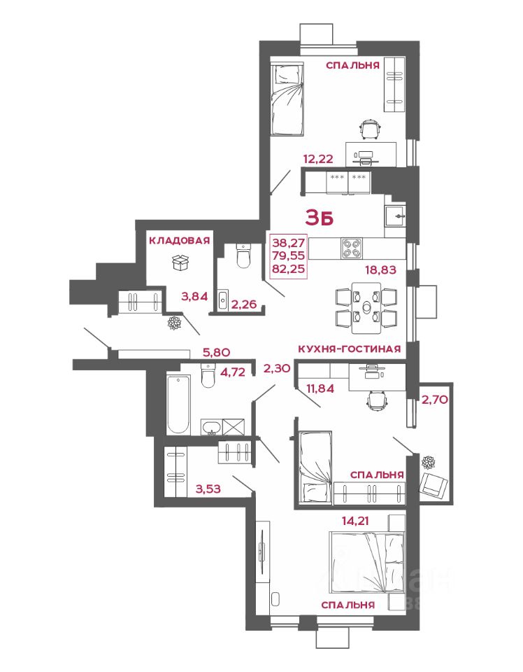 Общая площадь82,25 м²