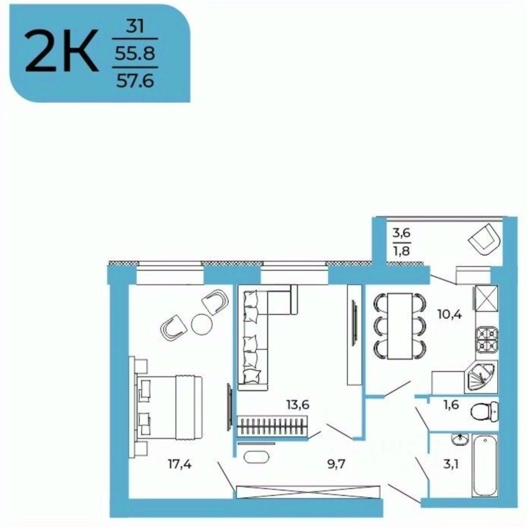 57,6 м²