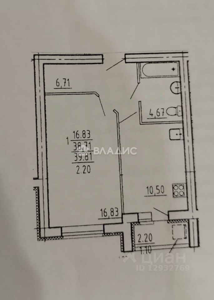 - Площадь кухни: 10.5 кв.м.