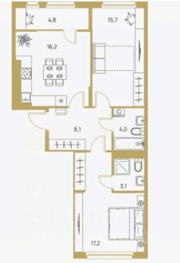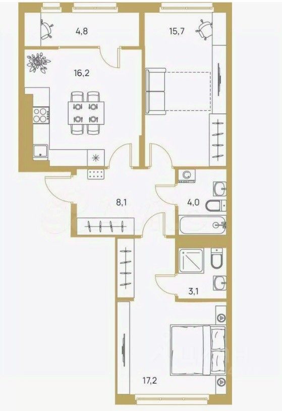 - Жилая площадь 36 кв. м. комнаты (17+16)