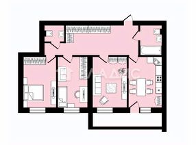 Общая площадь: 87.7 кв.м. (с учетом лоджии)