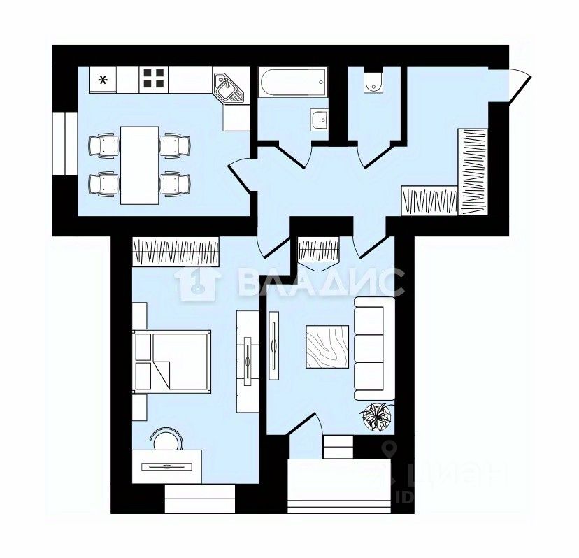 Общая площадь: 62.8 кв.м. (с учетом лоджии)