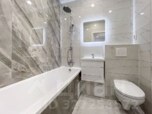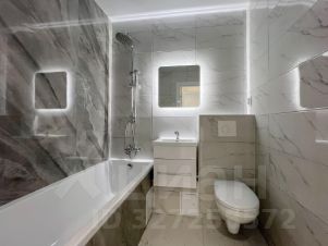 Санузел в современном широкоформатном кафеле, инсталяция, зеркало с подсветкой, акриловая ванна, хорошие смесители.