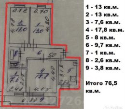Общая площадь 72,7 кв.м. + большая остекленная лоджия. Итого 76,5 кв.м.