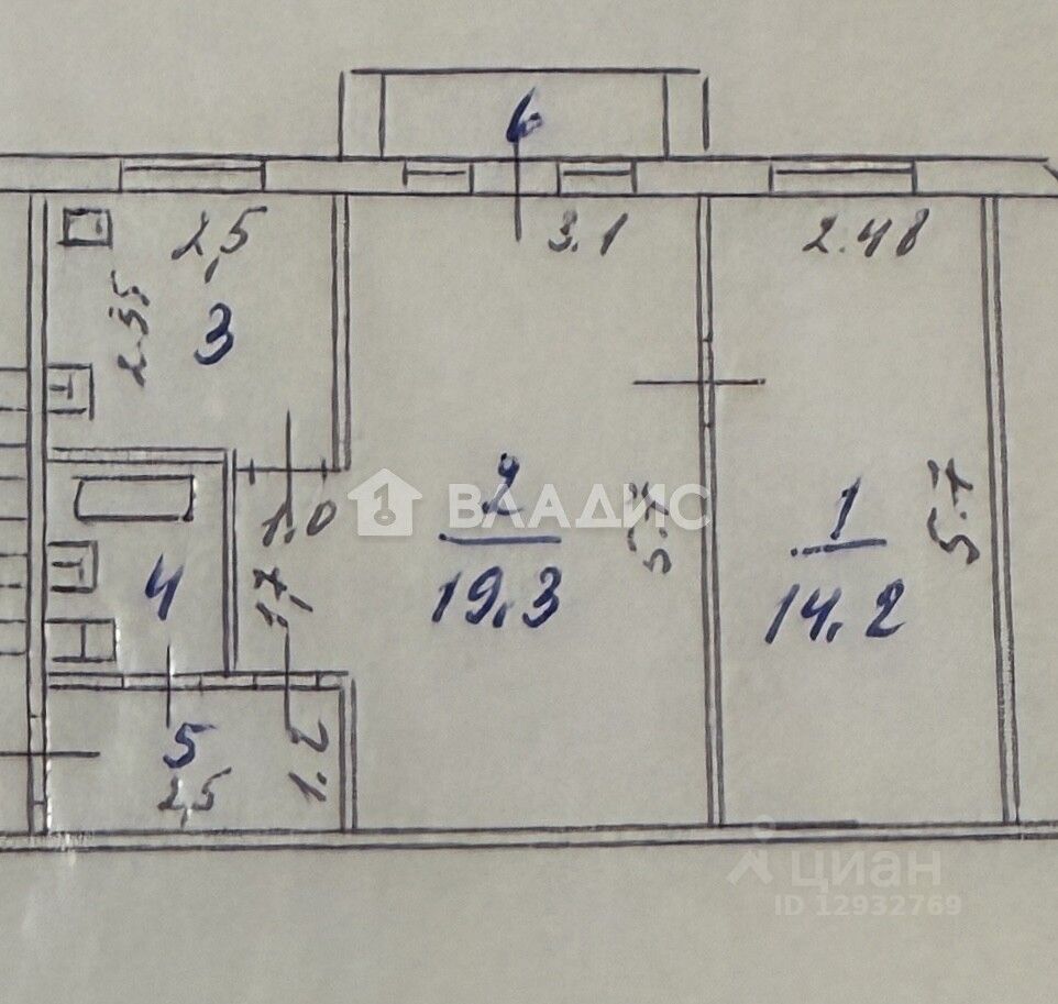 Жилая площадь 19,3 кв.м. + 14,2 кв.м.