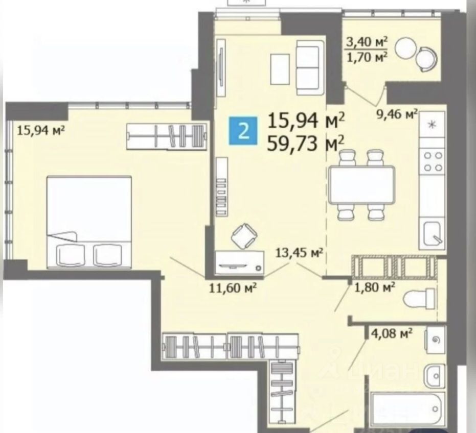 Собственником продается просторная двухкомнатная квартира площадью 59 кв. м, расположенная на 9 этаже 17-этажного дома. Жилая площадь составляет 29 кв. м, а просторная кухня площадью 10 кв. м станет отличным местом для семейных обедов и ужинов. Высота потолков — 2.7 метра, что создает ощущение простора и свободы. Квартира имеет одну лоджию, с окон открывается вид на озеро и лес.