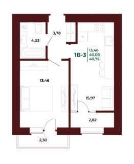 Общая площадь40,69 м²
