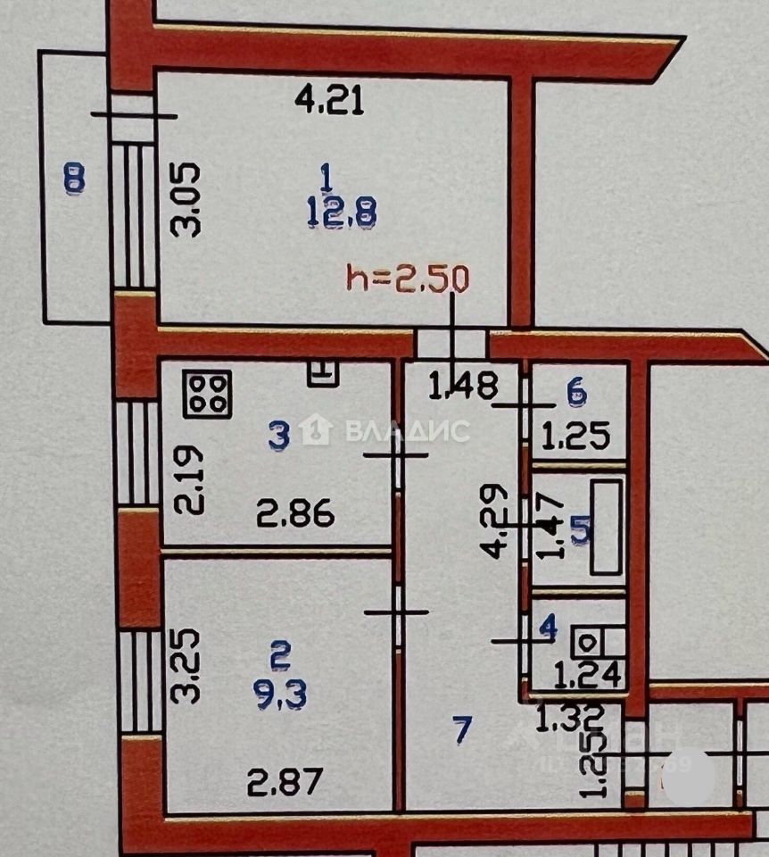 - Высота потолков 2,5 м создаёт ощущение простора и комфорта.