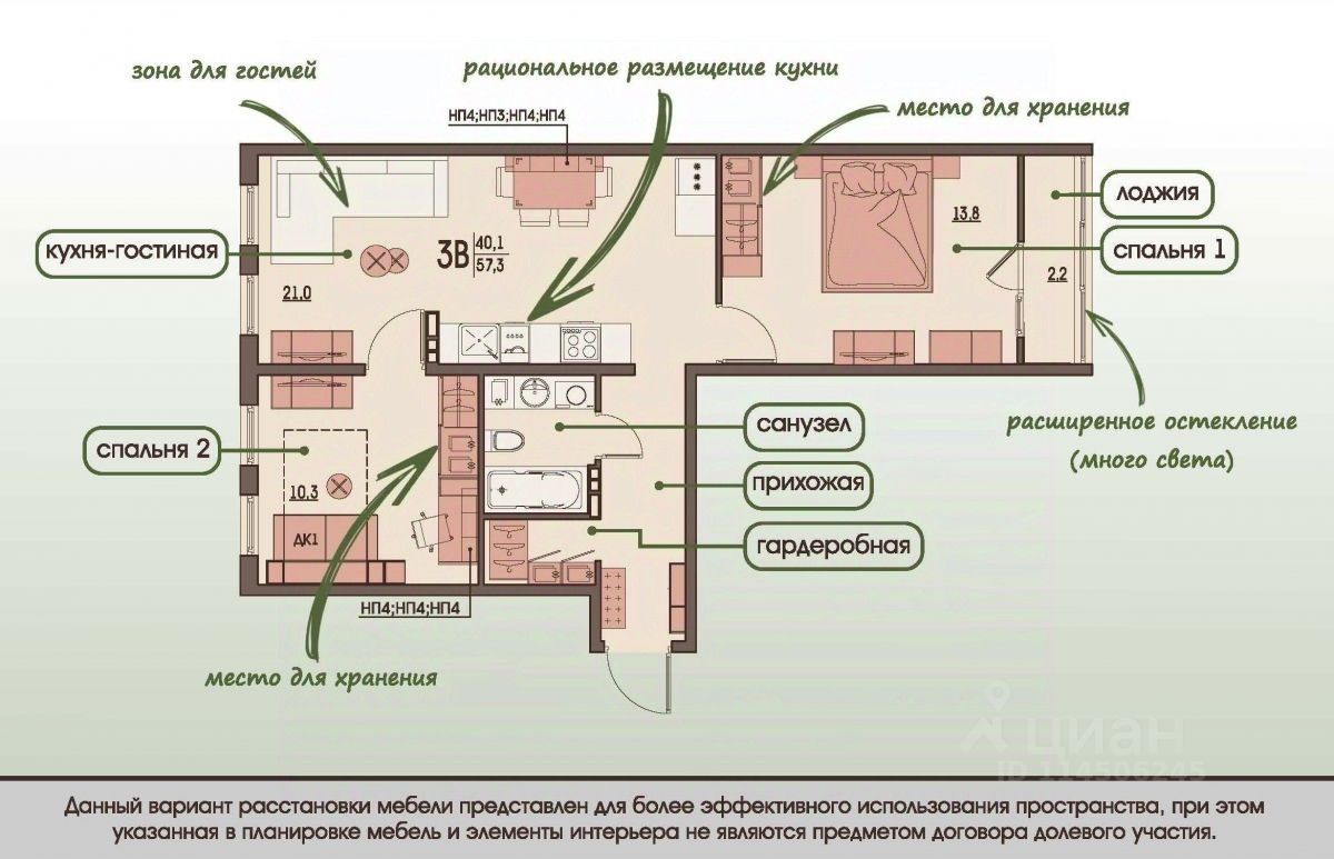 • Формат: Евро-3 (2 изолированные спальни + огромная кухня-гостиная). Идеально для семьи с детьми.