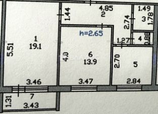 Общая площадь : 53 кв.м.