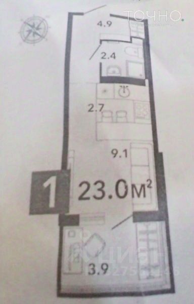 Квартиpa нa 4-м этaже 18-этaжного дома.