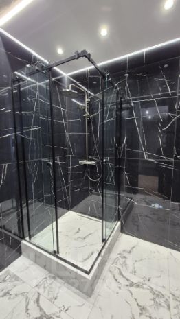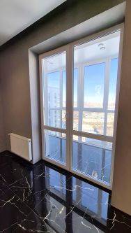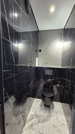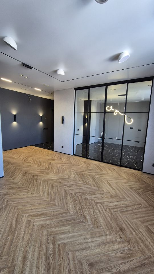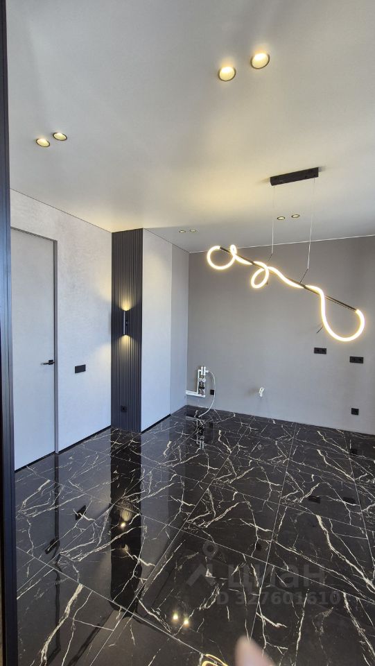 Только дорогие матриалы: мраморная плитка, двери скрытого монтажа, стеклянные раздвижные двери между комнатой и кухней, грамотная электроразводка, много продуманной подсветки, "проходные" выключатели, выводы под кондиционеры, электроводонагреватель.