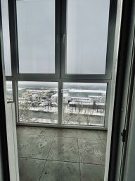 Окна выходят на улицу, а балкон предлагает уютное место для отдыха.