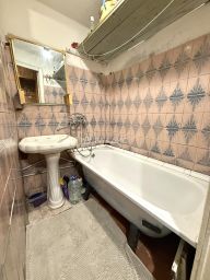 Санузел в кафельной плитке, раздельный.