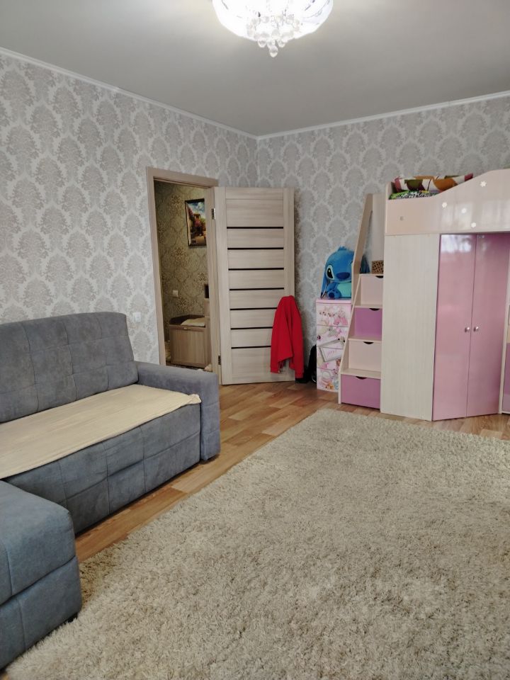 В квартире выполнен хороший ремонт, натяжные потолки во всех помещениях с точечными светильниками и основным светом, санузел в кафеле с угловой акриловой ванной, на полу в комнате, прихожей и кухне качественный прочный линолеум. В коридоре установлен встроенный шкаф для хранения одежды.