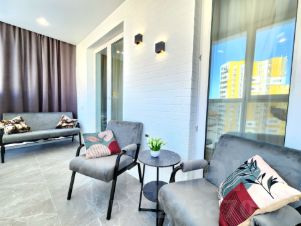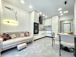 ОТЛИЧНОЕ ПРЕДЛОЖЕНИЕ!!! В продаже 2-комнатная квартира евро формата с новым ремонтом, мебелью и техникой в г. Спутник ЖК "Радужные дворы", Самая красивая набережная -здесь! Поющие фонтаны, колесо обозрения, тропа здоровья, парк аттракционов-для Вас. Радужные дворы это уникальный проект. Закрытая огороженная территория с видеонаблюдением по периметру, двор без машин. Большая автостоянка за домом. Во дворе детский сад, напротив новая школа им. Л. Б. Ермина и детская поликлиника. Во дворе ландшафтный дизайн, теневые беседки, детские площадки для детей разного возраста- это особенность жилого комплекса. Чистый аккуратный подъезд. Колясочная на первом этаже. Квартира расположена на 9м этаже из 16 ти. Ремонт выполнен по дизайн проекту из дорогих и качественных материалов. Все продумано до мелочей для вашего комфорта! Удобная продуманная планировка- просторная кухня гостиная, где можно проводить вечера в уютной обстановке. В комнате есть дополнительное пространство, что позволит вам использовать на свое усмотрение ( комната для отдыха или гардеробная). Французский выход на лоджию, что дарит ощущение пространства и много света. Лоджия с панорамным остеклением, теплая. Здесь оборудована зона отдыха и рабочее пространство. Напольное покрытие в коридоре и в кухне гостиной- керамогранит. Установлена система " теплый пол". В комнате ламинат 33 класса. Натяжные потолки, современный светильники, дизайнерские люстры, подсветка гардин. Санузел в современном кафеле, установлена новая сантехника, дорогие смесители, инсталляция, тропический душ, шкафчики. В квартире установлен новый кухонный гарнитур АГТ со встроенной техникой(варочная поверхность, вытяжка, духовой шкаф, встроенная микроволновая печь, встроенный холодильник), В коридоре установлена гардеробная система, в комнате кровать и прикроватные тумбы. На лоджии диванчик, стол для творчества, кресла и столик. ВСЕ ЭТО ОСТАЕТСЯ В ПОДАРОК!!! Заходи и живи! Без долгов и обременений, взрослый собственник. Показ в любое время. Ответственный специалист Тарасова Светлана Сергеевна.