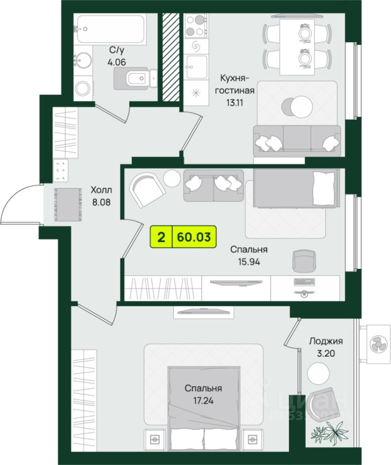 Продаётся 2-комнатная квартира в строящемся доме (дом 1), срок сдачи: I-кв. 2029, общей площадью 60.03 кв.м., на 6 этаже. Новый жилой комплекс "Притяжение" от застройщика "РКС Девелопмент" расположен по адресу Россия, Пенза, Первомайский район, микрорайон Тепличный, ЖК Притяжение.