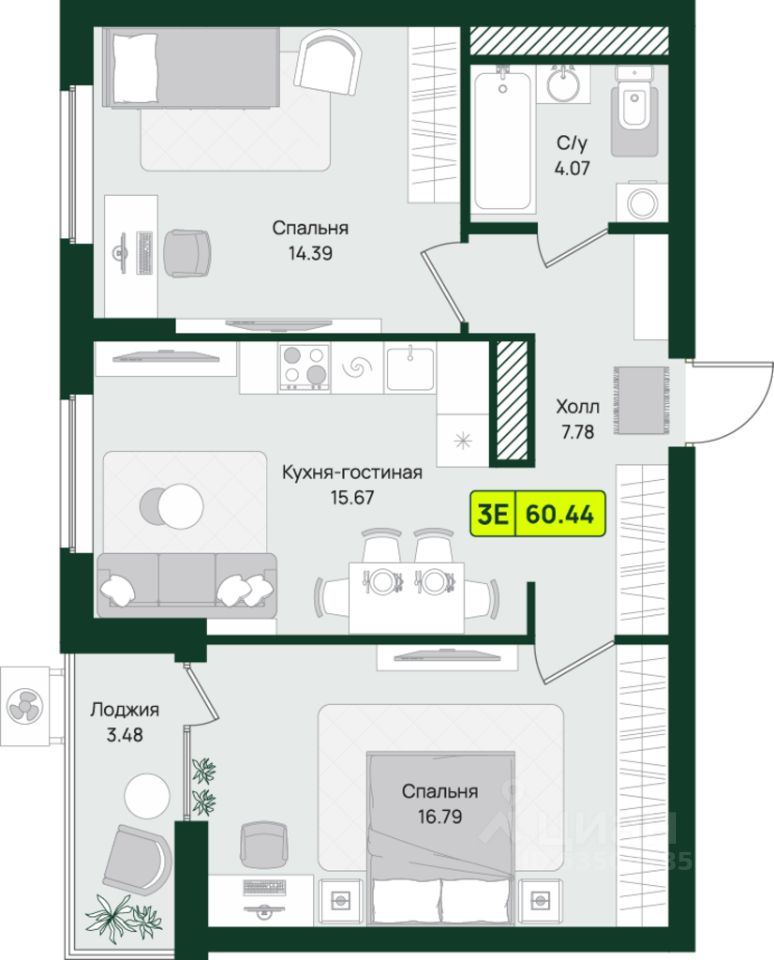 Продаётся 2-комнатная квартира в строящемся доме (дом 1), срок сдачи: I-кв. 2029, общей площадью 60.44 кв.м., на 9 этаже. Новый жилой комплекс "Притяжение" от застройщика "РКС Девелопмент" расположен по адресу Россия, Пенза, Первомайский район, микрорайон Тепличный, ЖК Притяжение.