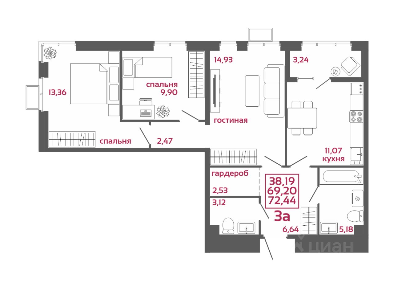 При проектировании квартир учитывались последние тенденции, а также потребности современных семей, поэтому планировки получились продуманные и функциональные. Возможность убрать или возвести новые перегородки позволяет трансформировать пространство и менять назначение помещений.