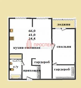 Общая площадь квартиры: 66кв м