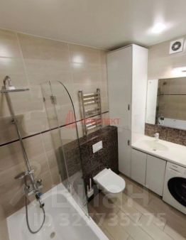 Просторный санузел с отделкой кафелем и светлая прихожая с удобной системой хранения.