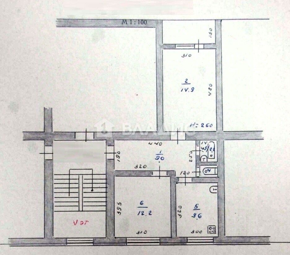 Жилая площадь 27,1 (12,2+14,9) кв.м.