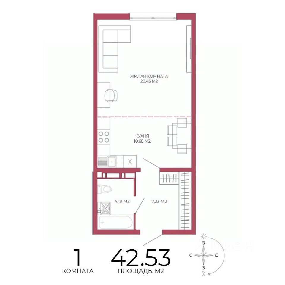 Продаётся 1-комнатная квартира в строящемся доме (Побочинская,60), срок сдачи: IV-кв. 2027, общей площадью 42.53 кв.м., на 7 этаже. Дизайнерская отделка.