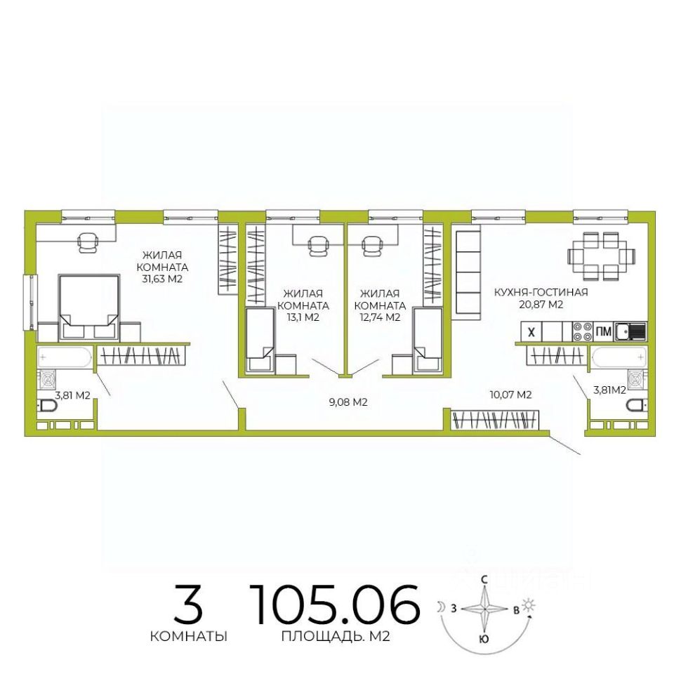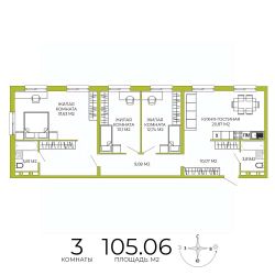 Продаётся 3-комнатная квартира в строящемся доме (дом 4 ), срок сдачи: IV-кв. 2026, общей площадью 105.06 кв.м., на 7 этаже. Дизайнерская отделка.