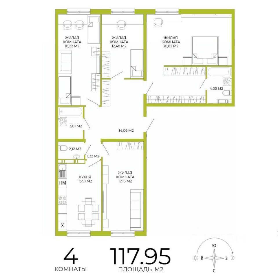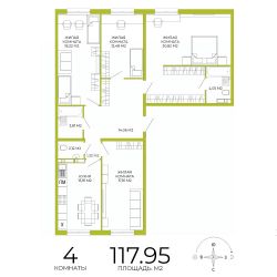 Продаётся 4-комнатная квартира в строящемся доме (дом 3), срок сдачи: IV-кв. 2026, общей площадью 117.95 кв.м., на 6 этаже. Дизайнерская отделка.