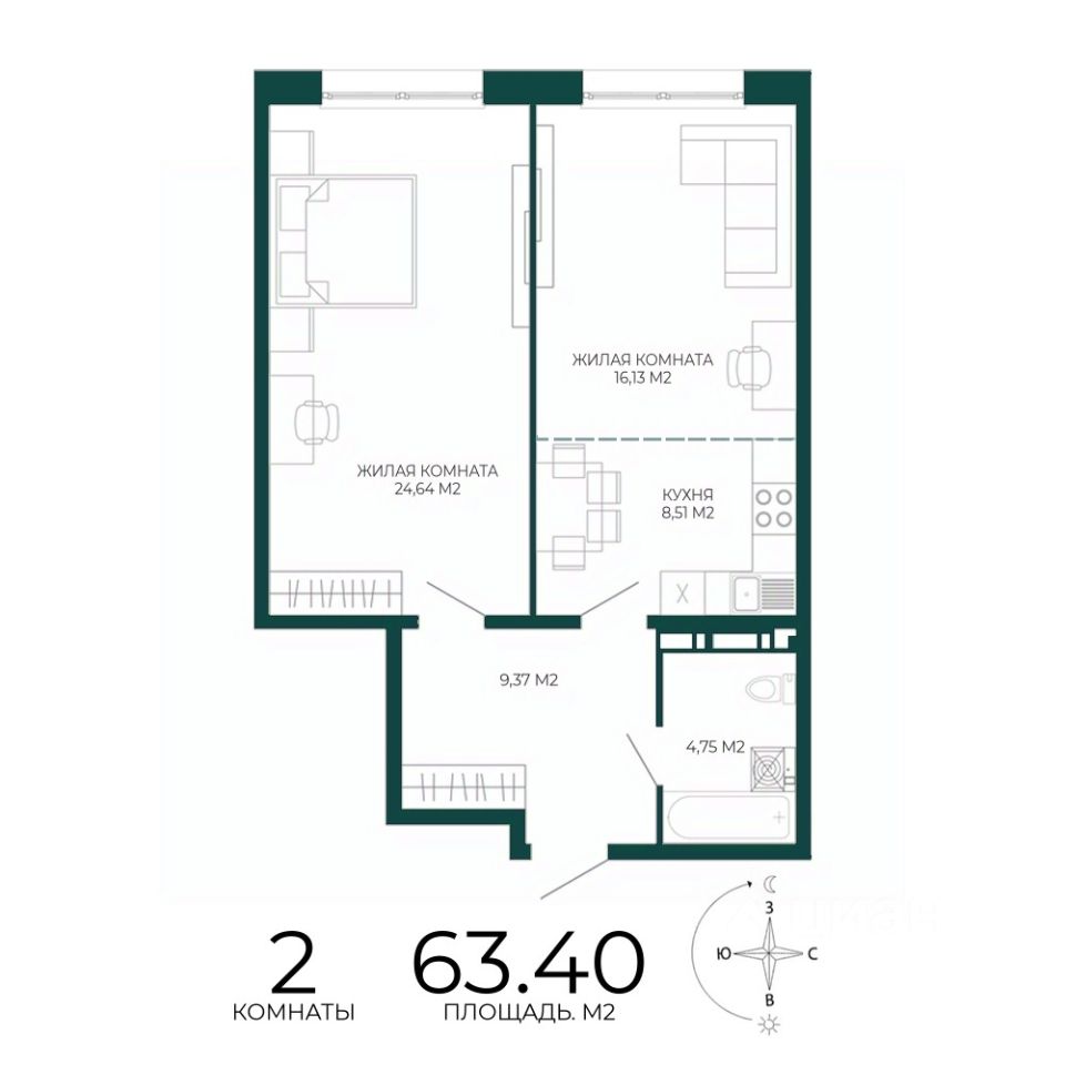 Продаётся 2-комнатная квартира в строящемся доме (2 этап (1 строение)), срок сдачи: III-кв. 2027, общей площадью 63.4 кв.м., на 2 этаже. Новый жилой комплекс "Чаадаев" от застройщика "Территория Жизни" расположен по адресу Россия, Пенза, улица Чаадаева, 60Б/2.