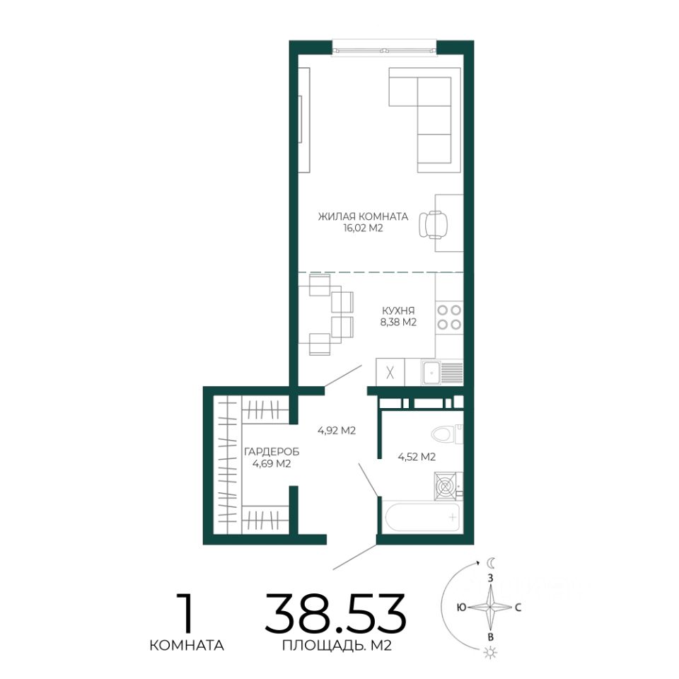 Продаётся 1-комнатная квартира в строящемся доме (2 этап (1 строение)), срок сдачи: III-кв. 2027, общей площадью 38.53 кв.м., на 7 этаже. Новый жилой комплекс "Чаадаев" от застройщика "Территория Жизни" расположен по адресу Россия, Пенза, улица Чаадаева, 60Б/2.