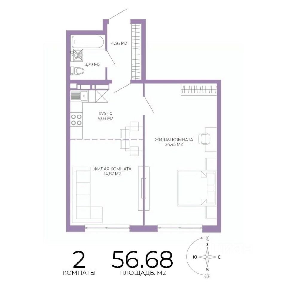 Продаётся 2-комнатная квартира в строящемся доме (2 этап (2 строение)), срок сдачи: III-кв. 2028, общей площадью 56.68 кв.м., на 2 этаже. Новый жилой комплекс "Чаадаев" от застройщика "Территория Жизни" расположен по адресу Россия, Пенза, улица Чаадаева, 60Б/2.