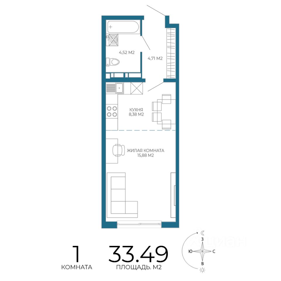 Продаётся 1-комнатная квартира в строящемся доме (1 этап (2 строение)), срок сдачи: III-кв. 2028, общей площадью 33.49 кв.м., на 5 этаже. Новый жилой комплекс "Чаадаев" от застройщика "Территория Жизни" расположен по адресу Россия, Пенза, улица Чаадаева, 60Б/2.