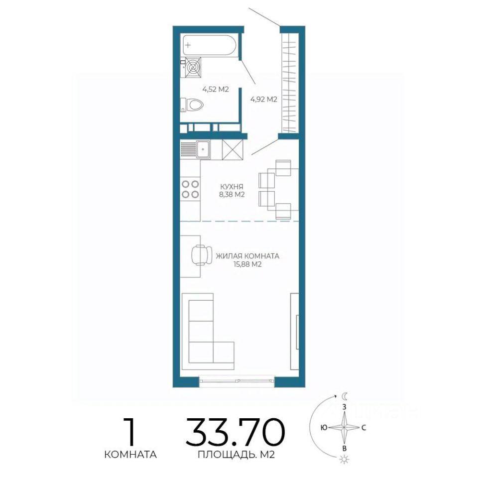 Общая площадь33,7 м²