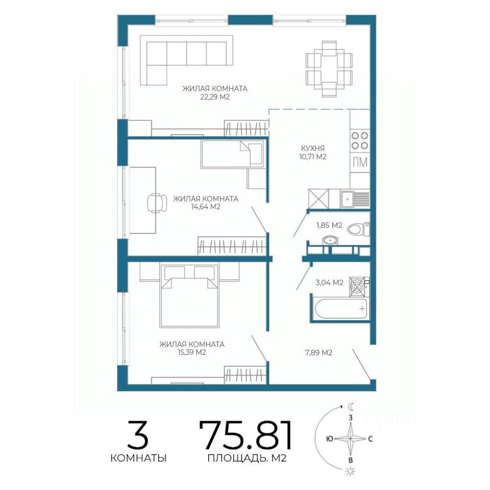 Общая площадь75,81 м²