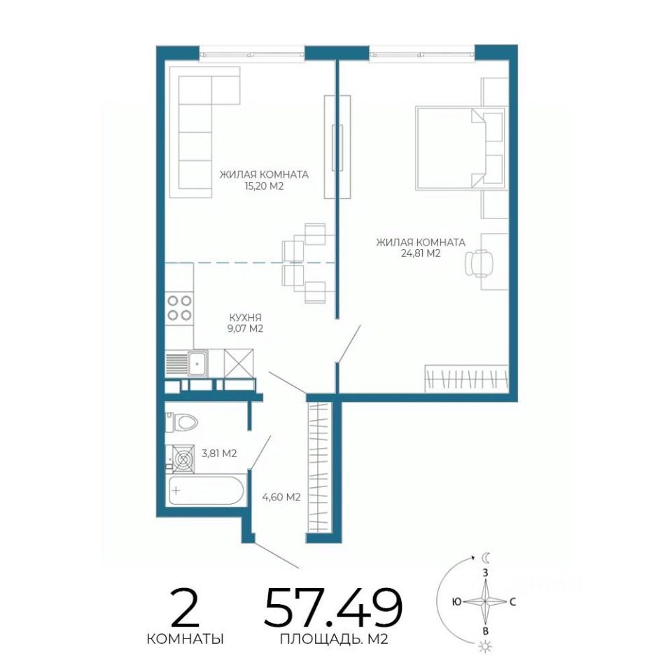 Продаётся 2-комнатная квартира в строящемся доме (1 этап (2 строение)), срок сдачи: III-кв. 2028, общей площадью 57.49 кв.м., на 9 этаже. Новый жилой комплекс "Чаадаев" от застройщика "Территория Жизни" расположен по адресу Россия, Пенза, улица Чаадаева, 60Б/2.