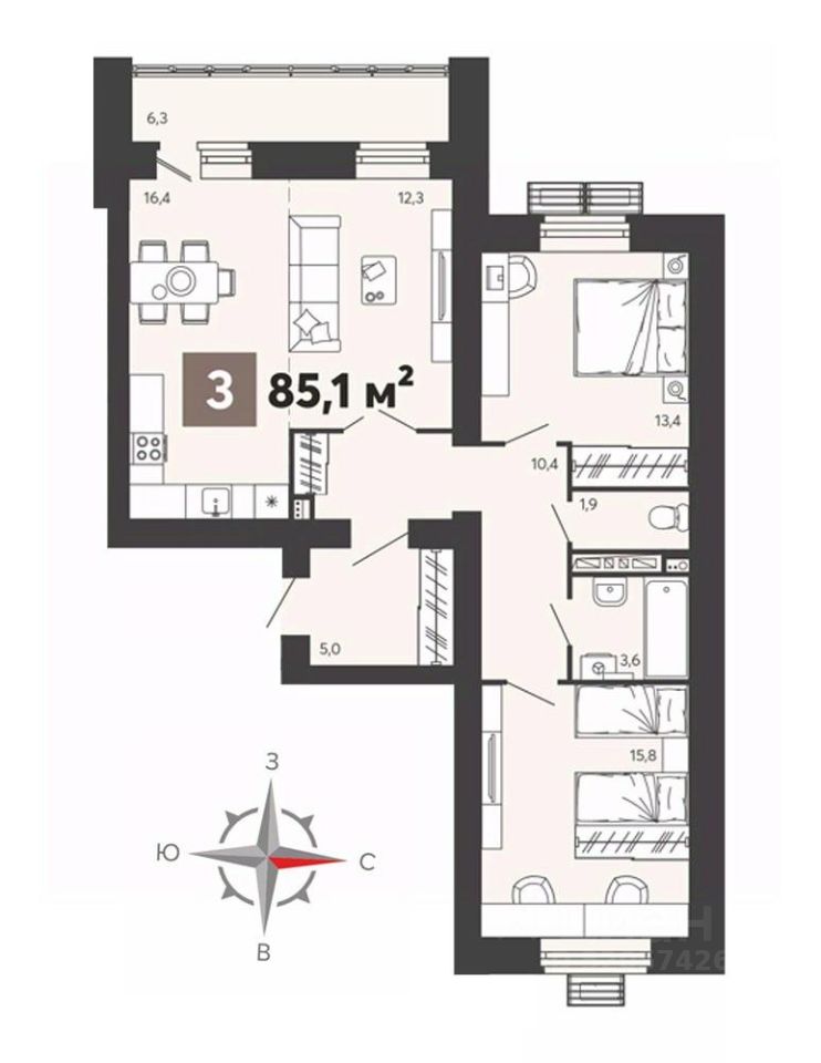 Продаётся 3-комнатная квартира в строящемся доме (дом 3-1), срок сдачи: II-кв. 2026, общей площадью 85 кв.м., на 5 этаже. ЖК "Новелла" имеет выгодное расположение: парки, скверы, роллердром, широкий выбор магазинов - все в шаговой доступности.Во дворе "Новеллы" запланированы современные игровые комплексы с безопасным покрытием и шумозащитный экран по периметру - для сохранения вашего спокойствия. Поэтому "Новелла" - воплощение мечты людей, которые ежедневно ищут варианты жилья доступного, но при этом комфортного и не удаленного от городских мест притяжения.ЖК "Новелла" с точки зрения планировок - это сочетание традиций и инноваций: можно подобрать квартиру классической планировки, а можно выбрать, например, с окном в санузле или большой кухней-гостиной, из которой можно попасть во все другие комнаты.В вашей истории должно быть красивое жилье и безопасный двор для спокойного отдыха. Жилой комплекс "Новелла" - новая история вашей жизни.
