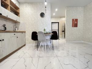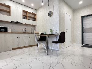 • Дорогие материалы: Полы керамогранит во всех мокрых зонах, ламинат в комнатах, стены качественные обои (в комнатах)