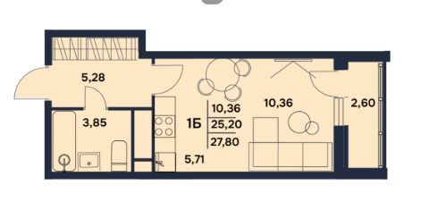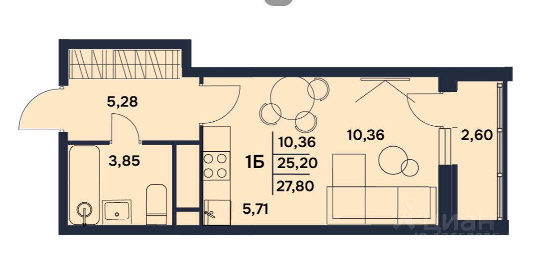 Просторную студию площадью 25,2 м2 + удобную лоджию 2,6 м2 — хватит места для всего необходимого!
