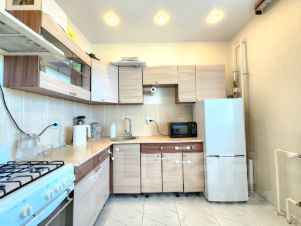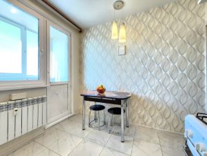 Чистый аккуратный подъезд, 2 лифта. Квартира расположена на 12м этаже, нет соседей сверху, никто не топает! Напольное покрытие в коридоре и на кухне- керамогранит. В комнате есть дополнительное пространство, что позволит вам использовать на свое усмотрение ( комната для отдыха или гардеробная).Лоджия остеклена. Здесь можно оборудовать дополнительное место для хранения одежды.Натяжные потолки, современные светильники, люстры. Санузел в современном кафеле, совмещен.