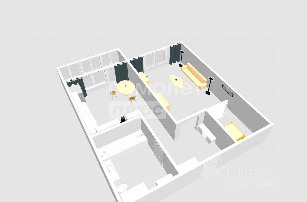 Общая площадь: 37 м2;