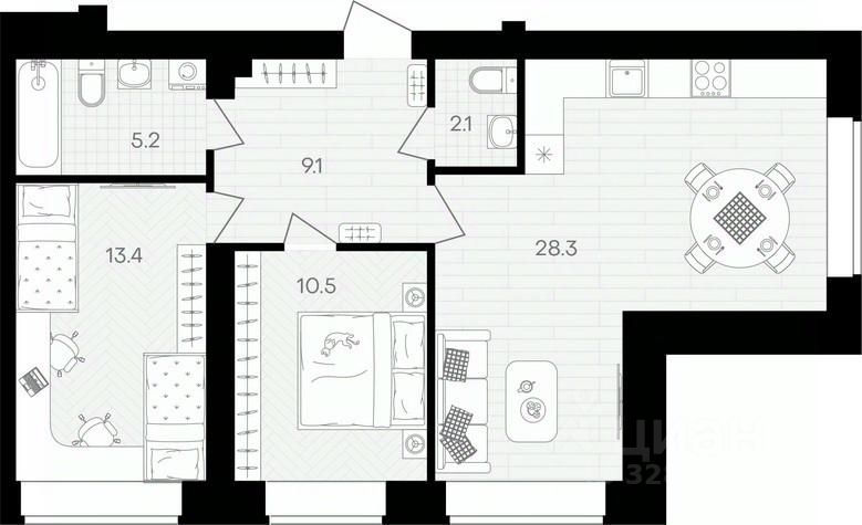 Площадь кухни28,3 м²