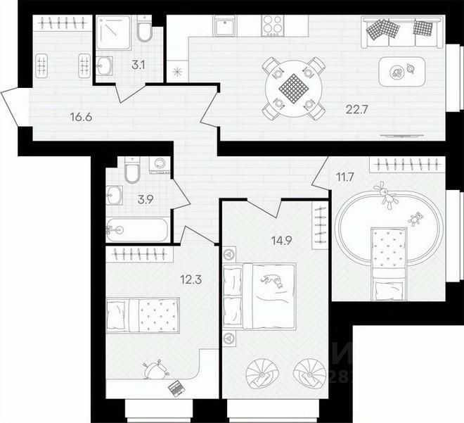 Площадь кухни22,7 м²