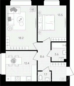 Площадь кухни12,4 м²