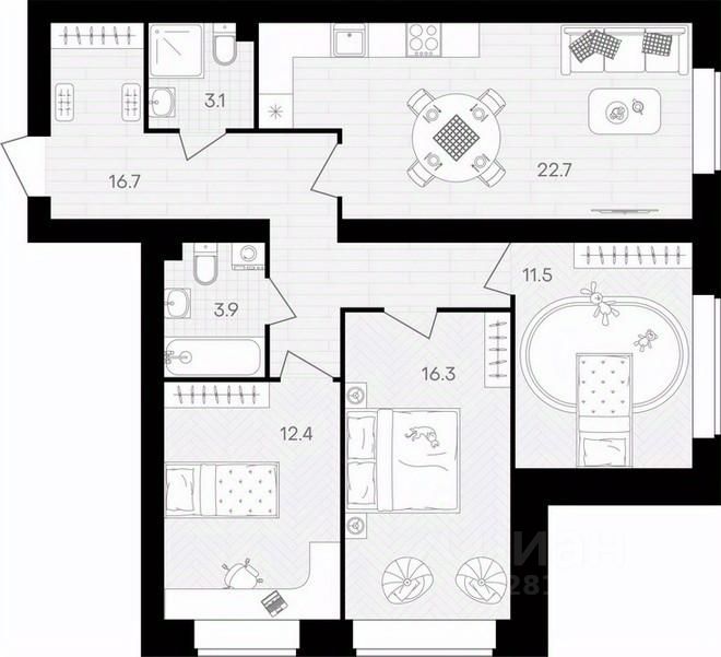 Площадь кухни22,7 м²