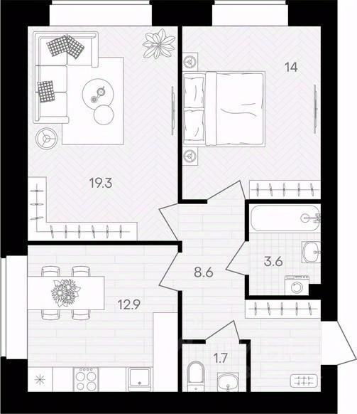 Площадь кухни12,9 м²