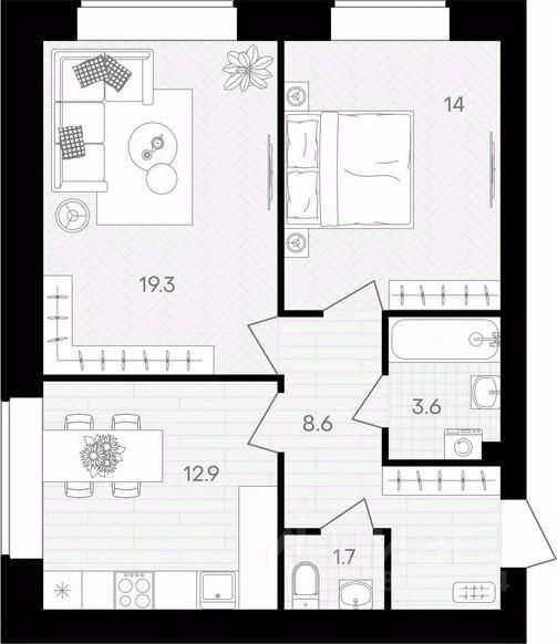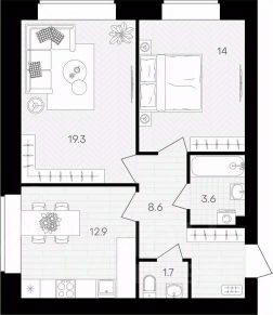 Площадь кухни12,9 м²