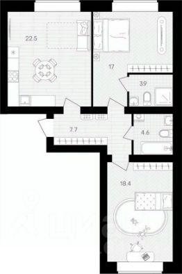 - Планировки на любой вкус: с просторными гардеробными, с кухнями-гостиными и мастер-спальнями, квартиры-трансформеры.