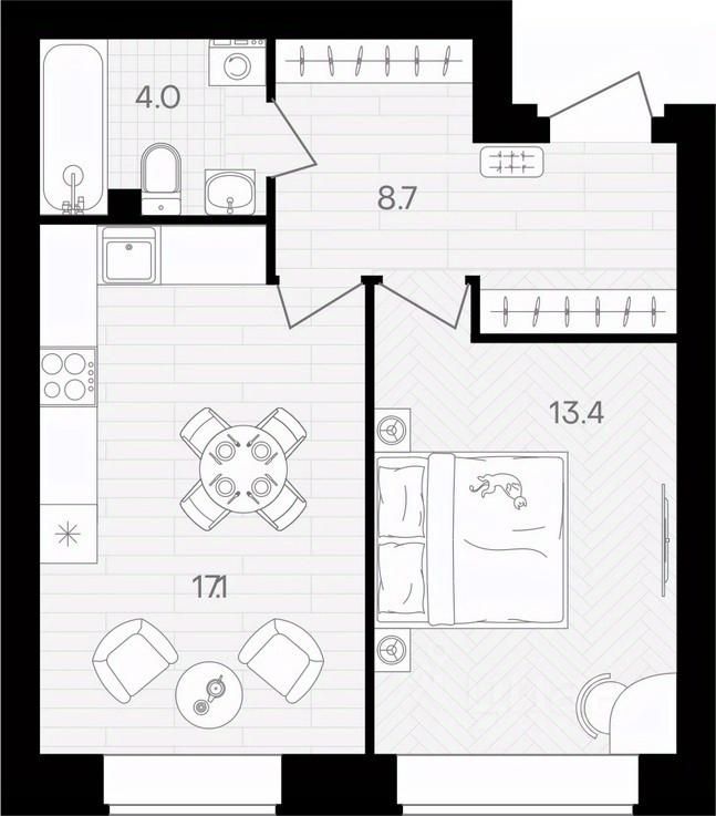 Общая площадь43,3 м²